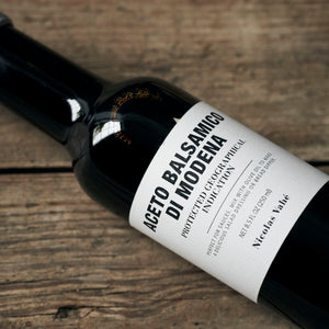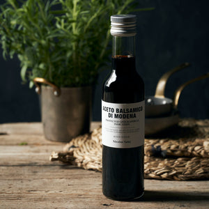 Dieser Balsamico-Essig ist ein italienischer aromatischer Essig, der auf konzentriertem Traubenmost basiert. Der Essig hat daher eine etwas dickere Konsistenz und einen süßeren Geschmack als andere Essigsorten. Der Balsamico-Essig eignet sich perfekt für Salatdressings, zum Verfeinern von Soßen oder zum Einkochen sowie als leckerer Sirup für Desserts oder zu Käse. Sie erhalten den Essig in einer dekorativen Glasflasche, die Sie zusammen mit Ihren Ölen und Lieblingsgewürzen von Nicolas Vahé in Szene setzen können.
