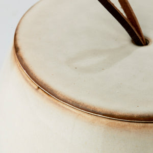 Der Reiz und die Besonderheit der Produkte der Serie Amera besteht darin, dass die Produkte mit einer doppelten reaktiven Glasur beschichtet sind. Dadurch können von Stück zu Stück Abweichungen in Farbe und Aussehen auftreten. Dies macht die Charakteristik und den Charme der Serie aus. HINWEIS: Der Krug ist mikrowellen- und spülmaschinenfest. Allerdings muss das Lederband vor dem Waschen entfernt werden.