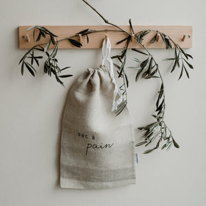 Dieser schöne Brotsack von Eulenschnitt ist nicht nur perfekt um Eurer Brot aufzubewahren, sondern zusätzlich eine wundervolle Tischdekoration. Das hochwertige Leinen ist mit dem handgeschriebenen Wort "Sac a pain" in der Farbe schwarz bedruckt. Druch einen Tunnelzug und einen Baumwollband lässt sich der Brotbeutel kinderleicht verschließen.