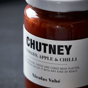 Chutney mit Tomaten, Apfel & Chili von Nicolas Vahé. Erwarten Sie Gäste und möchten Sie diese gern mit einer leckeren Tapas- oder Käseplatte begeistern? Dann ist dieses scharfe Chutney die perfekte Zutat für Sie. Sie können es auch ideal zum Verfeinern von Sandwiches und Wraps oder als Ketchup auf einem Burger verwenden.
