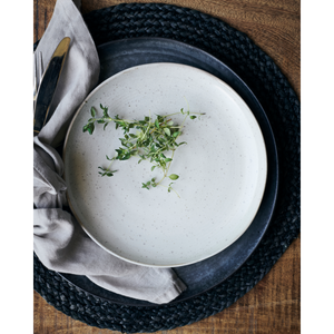 Lass dir dein Essen auf diesem Porzellanteller von House Doctor schmecken. Er heißt Pion und kommt in einer weiß-grauen, gesprenkelten Glasur, die dem Teller einen lässigen Look gibt, der besonders alltagstauglich ist. Die Größe ist perfekt fürs Abendbrot oder den kleinen Hunger zwischendurch. Dank der neutralen Farbgebung wird er jedes moderne Geschirrset und auch andere Keramikobjekte gut ergänzen. Kombiniere ihn mit anderen Geschirrstücken aus der Pion-Kollektion. Wenn du noch ein paar gemusterte Schalen dazustellst, bekommt dein Tischgedeck einen einzigartigen und verspielten Touch. Aufgrund der matten Textur der Glasur kann es bei Gebrauch des Artikels aus der Pion-Kollektion mit der Zeit zu Kratzern auf der Oberfläche kommen. Das verstärkt jedoch nur den rustikalen Charme des Designs.