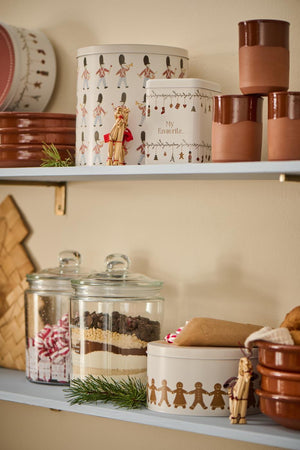 Diese quadratische Gebäckdose bietet eine wunderbare Aufbewahrungsmöglichkeit für Weihnachtsplätzchen und Konfekt. Verziert mit einzigartigen Girlanden mit Weihnachtsschmuck, die von der hauseigenen Designerin bei Ib Laursen entworfen wurde, strahlt sie einen ganz besonderen Charme aus. Die Farbe im Inneren der Dose entspricht dem schönen Offwhite auf der Außenseite, und das Finish der Dose ist innen wie außen seidenweich, was einen Hauch von Luxus und Eleganz verleiht.