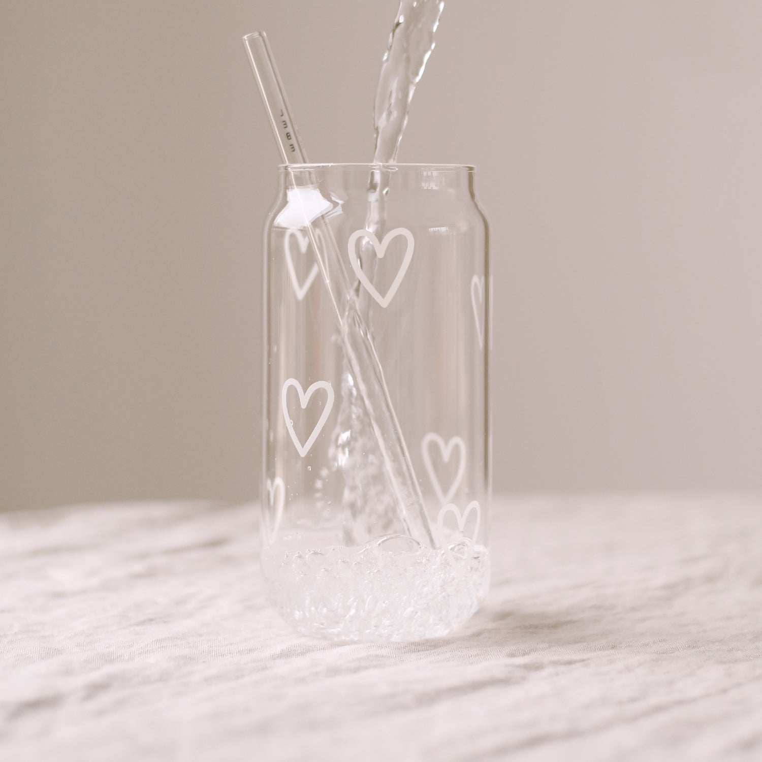 Mit diesem hohen Trinkglas kommt richtiges Sommer-Feeling auf. Mit den Herzenprints ist es perfekt geeignet für selbstgemachte Limonaden, Eistees, deine Lieblings Sommer-Cocktails oder leckere Milchshakes.