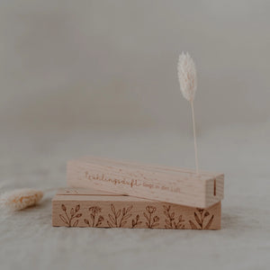 Das 2er Set besteht aus zwei Karten- und Blumenständern. Den einen Karten- und Trockenblumenständer ziert der Spruch "Frühlingsduft liegt in der Luft" und den anderen handgezeichnete Blumenwiese. Auf der Unterseite befindet sich jeweils ein kleines Eulenschnitt Logo. Das perfekte Frühlingsmitbringsel. Durch die Aussparung im Holz entsteht eine perfekte Halterung für Liebhabsel. In den 3 kleinen Löchern finden 3 wunderschöne Trockenblumen Ihren Platz und setzen das Liebhabsel damit super in Szene. Ein schnelles Austauschen nach Lust und Laune ist somit problemlos möglich. Das Format eignet sich perfekt für Deine liebsten Fotos, Postkarten und Bilder. Unsere Trockenblumen- und Kartenständer sind zudem ein super Geschenk, denn wer freut sich nicht über ein tolles Foto, welches mit wunderschönen und langlebigen Trockenblumen dekoriert ist?