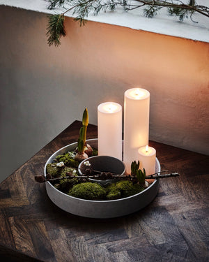 Der Ring ist ein schöner und vielseitiger Kerzenhalter von House Doctor für Stumpenkerzen oder einfach zum dekorieren. Er ist aus Polystone gefertigt und hat ein natürliches, zementähnliches Aussehen, das sich mühelos in jede Einrichtung einfügt. Der Kranz kann das ganze Jahr über verwendet werden. Mit Zweigen, Blumen oder Moos verleihst du ihm einen frühlingshaften Touch. Oder verwandle ihn im Winter mit Kerzen, Tannenzapfen und Ornamenten in einen modernen Adventskranz. Ob dekoriert oder unbearbeitet, er verleiht jedem Haus und jedem Tisch einen schlichten, aber auffälligen Touch. Wenn du dich entscheidest, mit Elementen im Freien zu stylen, beachte bitte, dass dieser Artikel porös ist. Aus diesem Grund können wir nicht garantieren, dass er wasserdicht ist. Um eine Beschädigung deiner Oberfläche zu vermeiden, lege das Produkt auf eine Unterlage oder verwende einen Kunststoffeinsatz