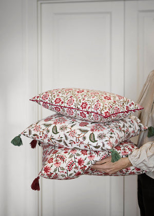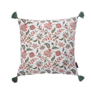 Kissenbezug mit handgefertigtem Blockdruck und Quastendetail, 100 % Baumwolle.