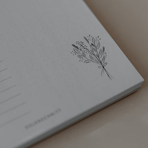 Entdecke diesen nachfüllbaren Notizblock Denk dran mit Punktraster und To-Do Liste zum Abhaken deiner Gedanken, wichtigen Notizen und kreativen Ideen. Das ganz besondere Etwas ist die wundervolle kleine Blumenstrauß Illustration, welchen jedes Blatt ziert.