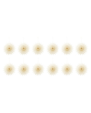 Verleihen Sie Ihrer Weihnachtsdekoration zusätzliche Festlichkeit mit diesen handgefertigten Papierfächern. Ihre filigranen Formen und der warme Elfenbeinton geben jedem Raum eine gemütliche Atmosphäre. Hängen Sie sie an Zweige, den Weihnachtsbaum oder über den Esstisch für einen eleganten Akzent.