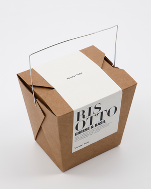 Carnaroli reis, Schafskäse 3.6% (pasteurisierte Schafsmilch, Salz, Lab, Milchsäure-Fermente), Basilikum 1.9% (Basilikum, Salz, Zucker), Gemüsebrühe (Salz, Zwiebeln, Karotte, brauner zucker, Tomate, Schnittlauch, Petersilie, kurkuma), Zwiebeln, Mozzarella 1.2% ((Kuhmilch, Salz, Lab, Milchsäure-Fermente), Maltodextrin, Salz), Kräuter.