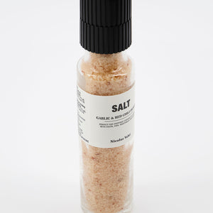 Inhalt: Salz 98%, rote Chilischoten, Knoblauch.