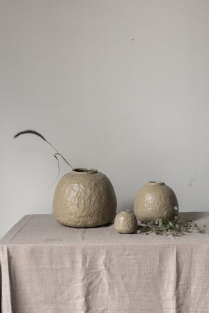 Glasierte Vase mit natürlicher Ausstrahlung. Die unregelmäßige Form und Textur machen diese Vase einzigartig und einfach zugleich, so dass sie in die meisten Wohnungen passt.