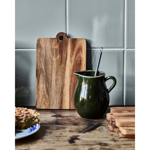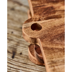 Dieses Schneidebrett, gefertigt aus Akazienholz, beeindruckt durch Haltbarkeit und die natürliche Maserung. Verwenden Sie es, um Ihre Kochkunst zu präsentieren oder um Gäste mit einem eleganten Serviererlebnis zu beeindrucken. Die abgerundeten Kanten und das dekorative Loch bieten sowohl Funktionalität als auch eine optische Aufwertung Ihrer Küche.