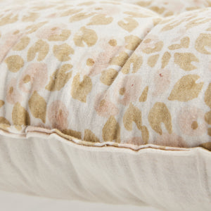 Verwandeln Sie Ihren Raum mit diesem wunderschönen Kissen in eine Wohlfühloase. Eine Seite zeigt ein handgedrucktes Blockmuster, das die Kunstfertigkeit des Handwerks widerspiegelt und sicherstellt, dass jedes Stück ein echtes Unikat ist. Die Rückseite bietet eine passende einfarbige Gestaltung.