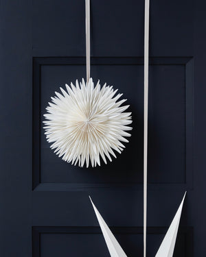 Dieser handgemachte Stern von House Doctor besteht aus mehreren Papierschichten. Dank der weißen Farbe, wird es schnell ein zentraler Teil der Weihnachtsdeko und er lässt sich prima mit einer Fassung und Birne aufleuchten. Der moderne Stern macht sich toll im Fenster oder von der Decke hängend, wo er sicherlich ein Blickfang sein wird. Egal, ob mit anderem weißen Schmuck oder in Kombination mit anderen Farben, wird der Stern an Weihnachten für stilvolle Eleganz sorgen.