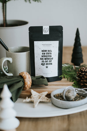 Dieser Tee ist nicht nur ein Getränk, sondern ein Herzensgruß. „Möge dich ein Stern begleiten“, und dieser Schluck begleitet dich mit jeder Tasse – ein bisschen Ruhe, für alle Zeiten.