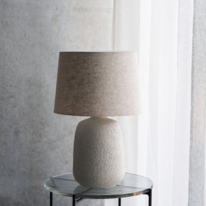 Mit Tana von House Doctor bekommst du nicht nur eine Tischlampe, sondern auch ein kleines Kunstwerk. Die Kombination aus Steingutfuß und Stoffschirm ergibt einen ausgewogenen Look. Lass die leichten, modernen Farben dein Wohnzimmer aufhellen, oder benutze das Design als Ergänzung für deine Einrichtung in den Farben Beige, Creme und Sand. Egal, ob du die Lampe auf den Beistelltisch oder der Anrichte stellst, überzeugt Tana mit Funktionalität und moderner Eleganz.