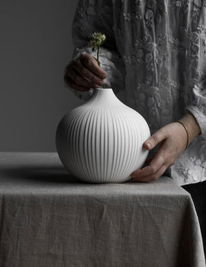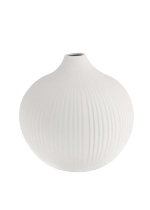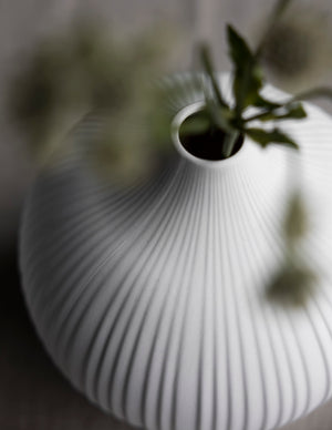 Die weisse Vase"Fröbacken" von Storefactory ist eine stilvolle Vase mit gerippter Struktur.